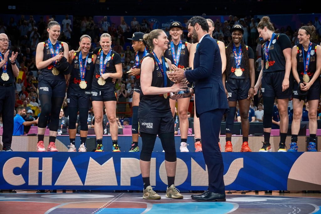 U finalnoj utakmici Evropskog prvenstva za žene u Pireju Belgijanke su velikim preokretom u finišu meča pobijedile Španiju rezultatom 67:65 (18:19, 13:18, 18:15, 18:13). Ovim podvigom postala su tek treće selekcija koja je odbranila titulu. Prije Belgije to su učinili Španija i Sovjetski Savez.